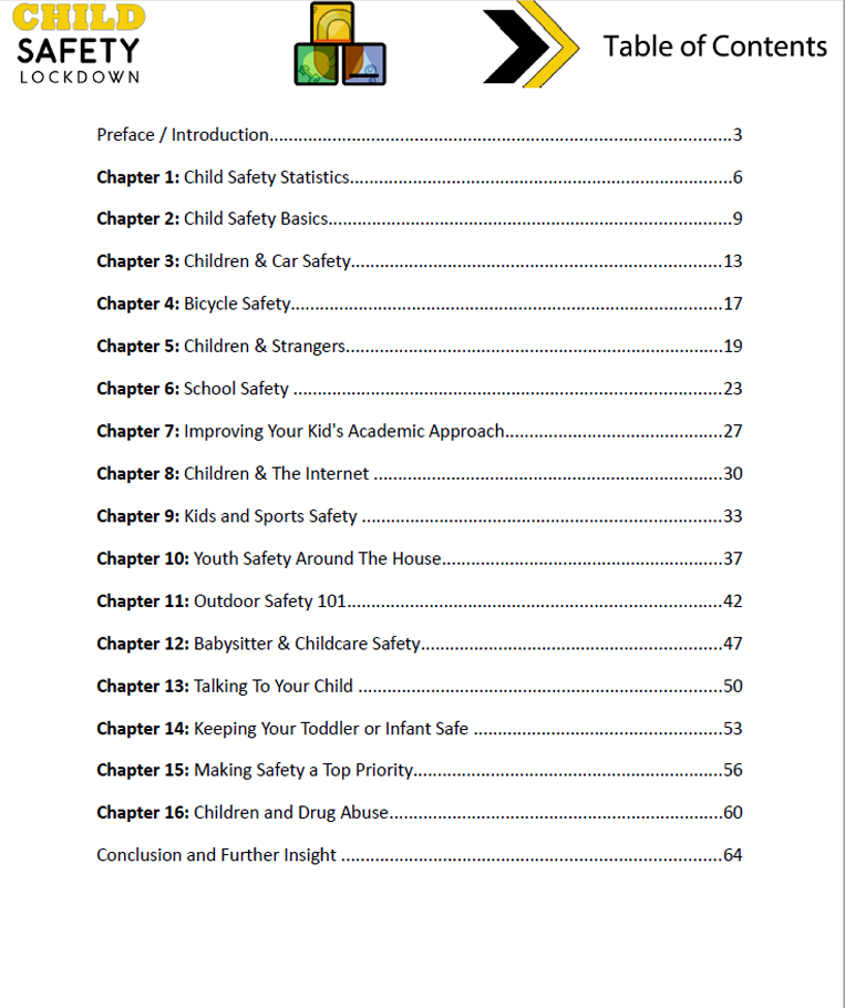 You will be provided you with countless proven tips and information for child safety when theyre at home with the babysitter and while they ride their bike; there is safety information for babysitters and dealing with strangers.